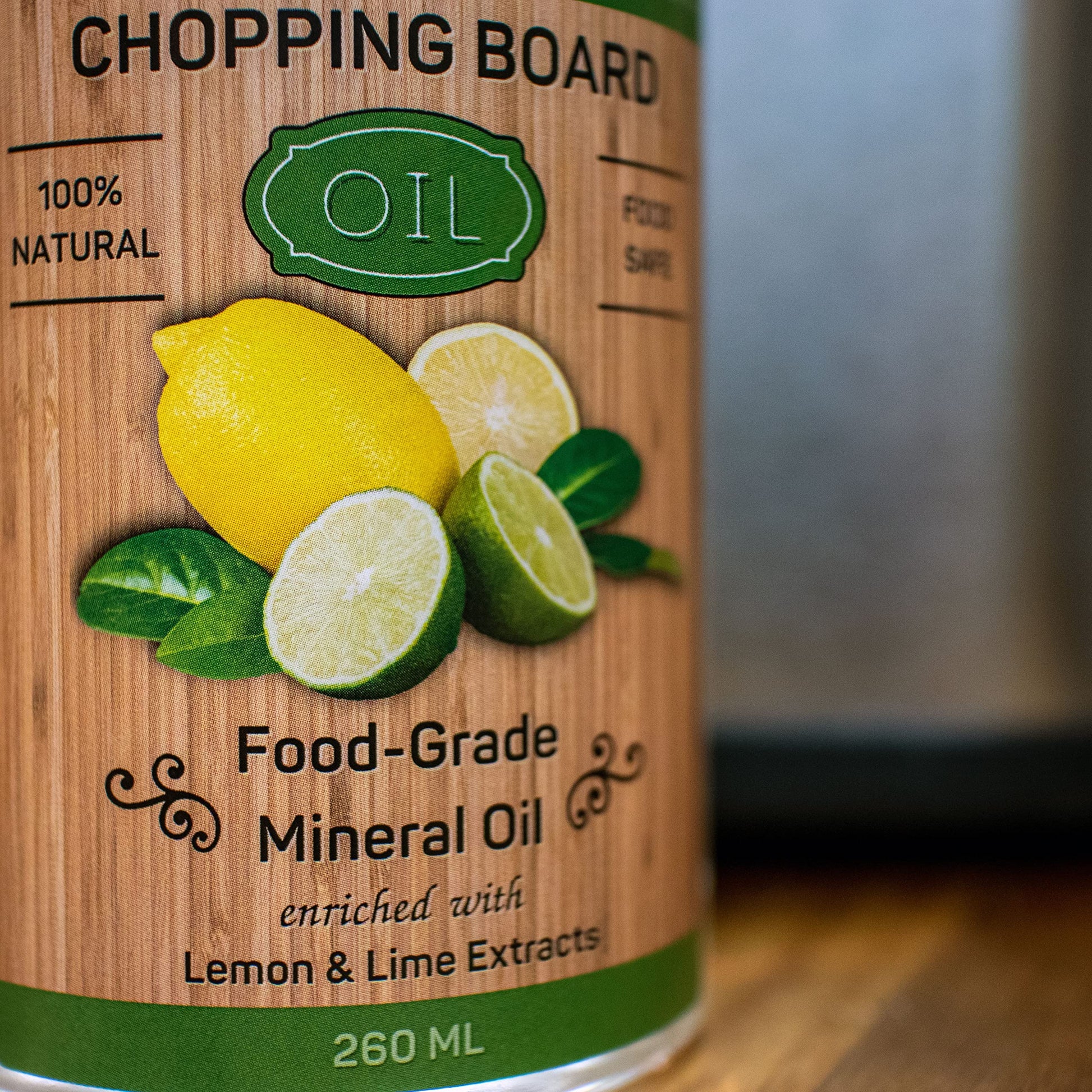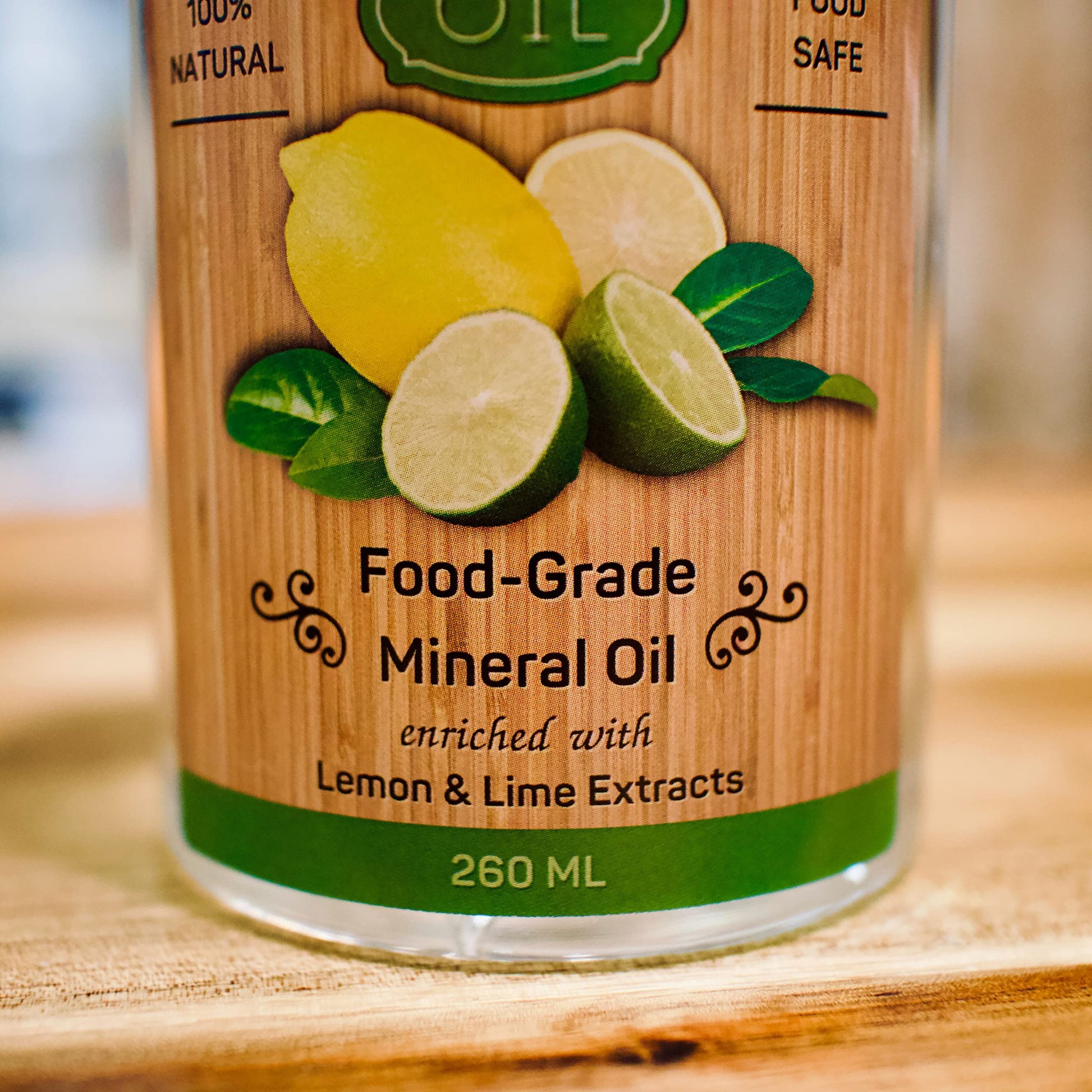 Chopping Board Oil (260ml) - Enriched with Lemon & Lime Oils - Food Grade Mineral Oil - Chopping Block Oil & Conditioner